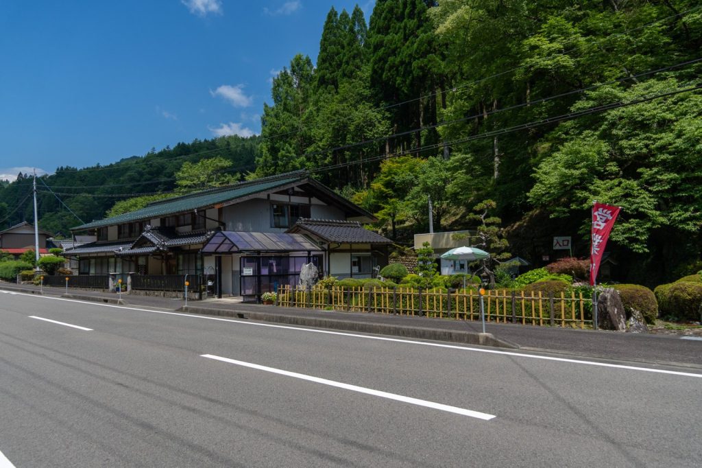 郡上鍾乳洞が位置するのは、郡上市と下呂市を結ぶ国道256号線沿い。遠目から見ると、まるで普通の民家のよう。看板を見落としたらそのままスルーしてしまいそうな、ジミ~な外観が逆に珍スポ感を醸し出しています。