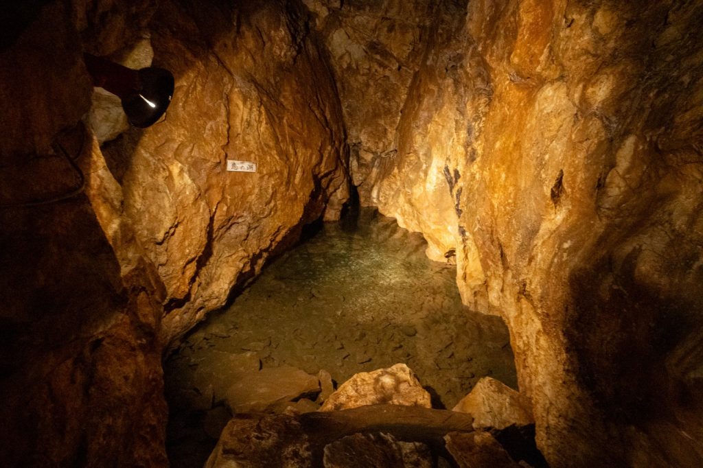 鍾乳洞内部は比較的広々としており、道も明るく整備されているため、子ども連れでも安心して探検できます。通路の横を流れる清流を眺めながら進むと、なんだか普通の鍾乳洞とは違う、不思議な癒しを得られますよ。