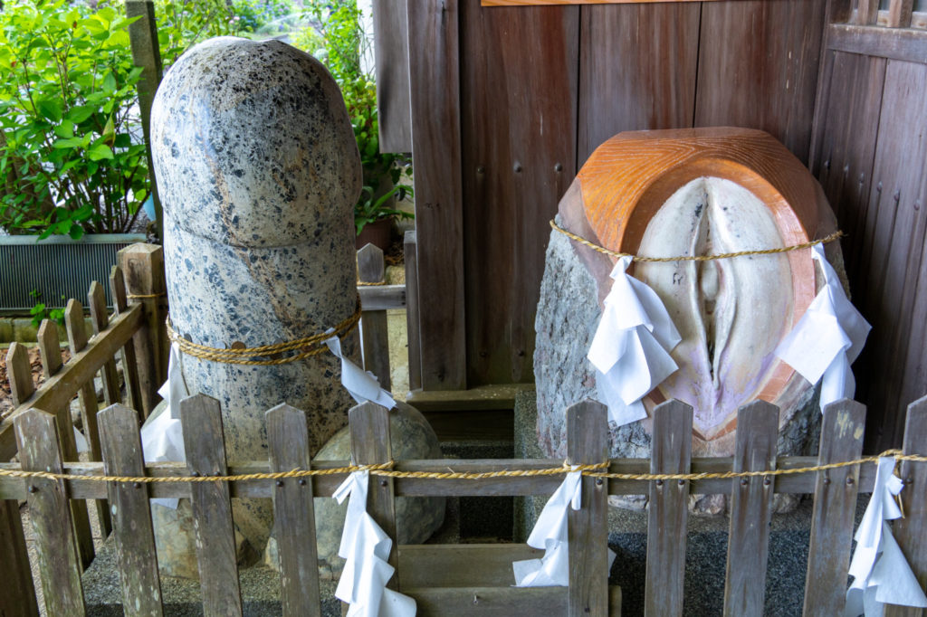 歓喜神社の名物、デカ陰陽石。男性は女性側を、女性は男性側を擦るといいんだそう。ちょっとリアルすぎませんか。