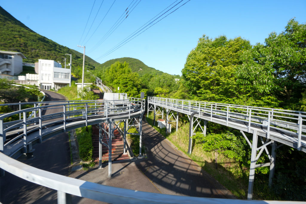 モノライダーとは「単軌条運搬器具」、つまり1本の軌道上を走る運搬機だそうです。モノレール・リフトとかミカンモノレールとか呼ばれるようですが、とくに乗用のものを「モノライダー」というのかな?