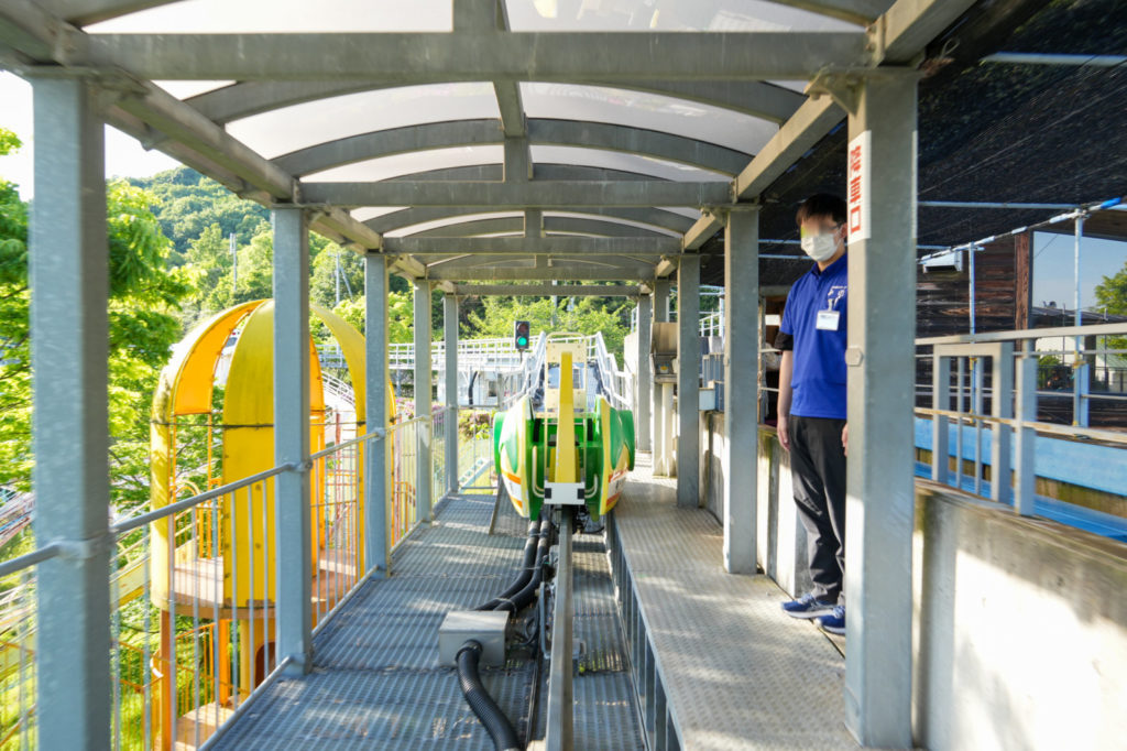道の駅のなかの券売機で【モノライダー 大人】のボタンを押し、乗車口のスタッフさんに意気揚々と切符を渡しました。