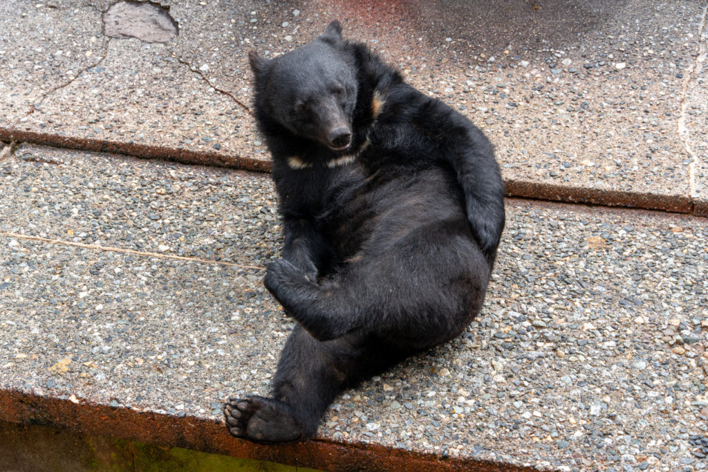 クマ舎は性別や年齢ごとに区分けされており、一番広いエリアには大小さまざまなクマたちがのんびり。